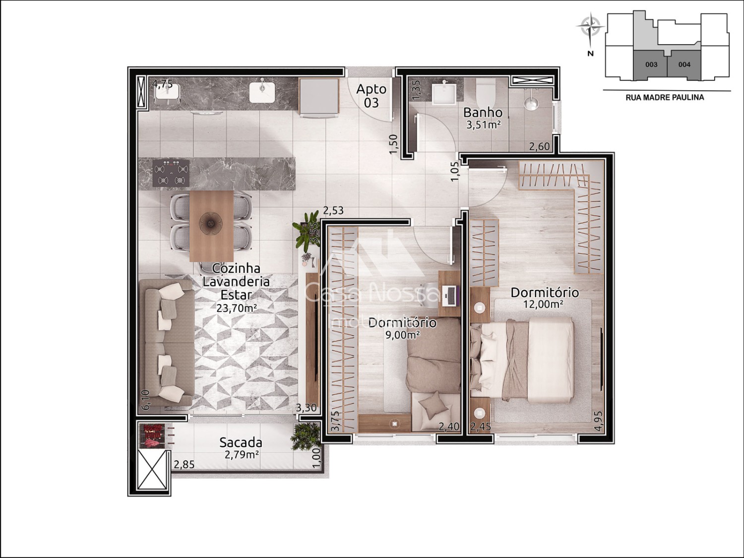 A localização do DOPPIO é outro diferencial que merece destaque. Situado na Rua Madre Paulina, o empreendimento conta com fácil acesso tanto ao Centro da cidade como para cidades vizinhas. Além disso, a proximidade com belas paisagens naturais e áreas verdes garante momentos de paz e tranquilidade aos moradores, contando ainda que fica muito próximo a ciclovia de Carlos Barbosa, um espaço único que proporciona a melhor experiencia em lazer.