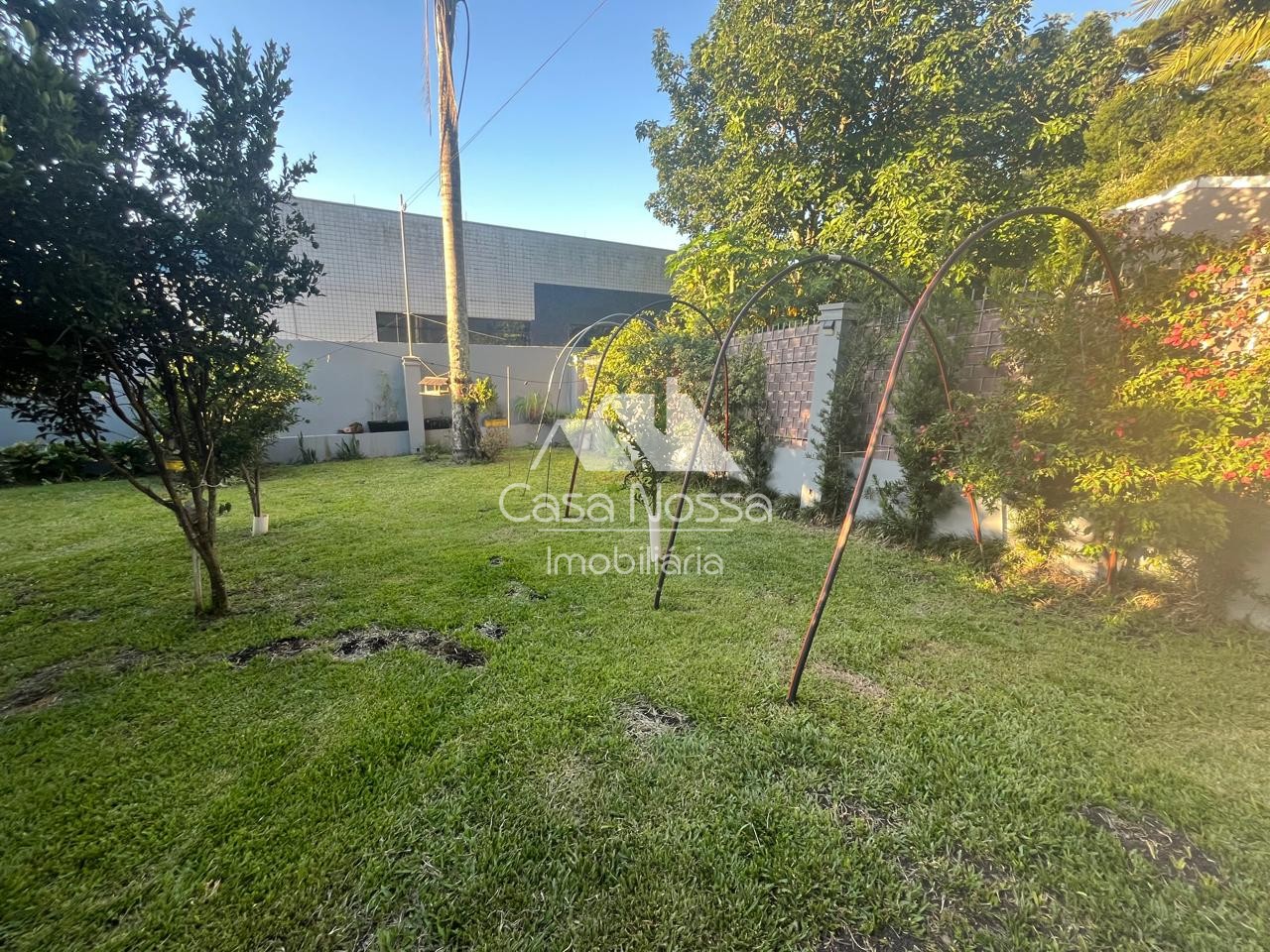 O ambiente conta com um belo jardim na frente, perfeito para dar as boas-vindas, e um espaço de lazer no fundo com gramado, árvores frutíferas e iluminação suave, ideal para momentos de relaxamento e descontração.