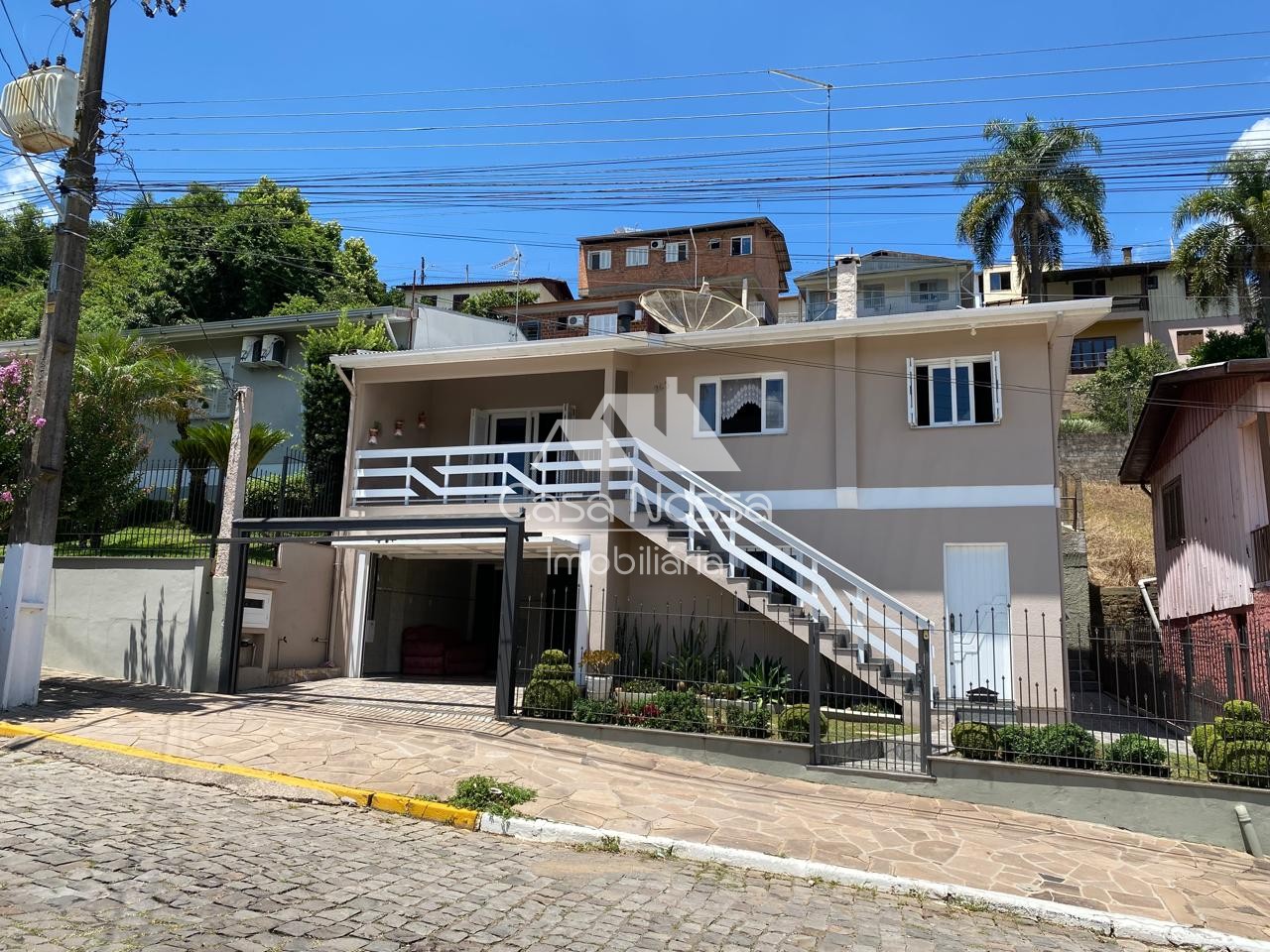 Descrição › Venha conhecer esta bela casa de 195 m² localizada no bairro Vila Nova, em Carlos Barbosa. Com excelente conservação e pronta para morar, o imóvel oferece conforto e praticidade para toda a família. No andar superior, você encontrará uma sala, varanda, cozinha, 3 dormitórios, 1 banheiro e uma lavanderia. Além disso, a casa conta com lareira com calefação e fogão à lenha para os dias mais frios. No andar de baixo, há uma garagem para dois carros, mais um dormitório, banheiro, espaço de churrasco e uma sala e cozinha integrada. A captação de água da chuva, com reservatório de 3.000 litros, abastece a lavanderia, parte sanitária e pátio. Com uma localização privilegiada, próximo a mercados e parquinhos, esta casa é ideal para quem busca qualidade de vida e bem-estar. Agende sua visita e venha se encantar!