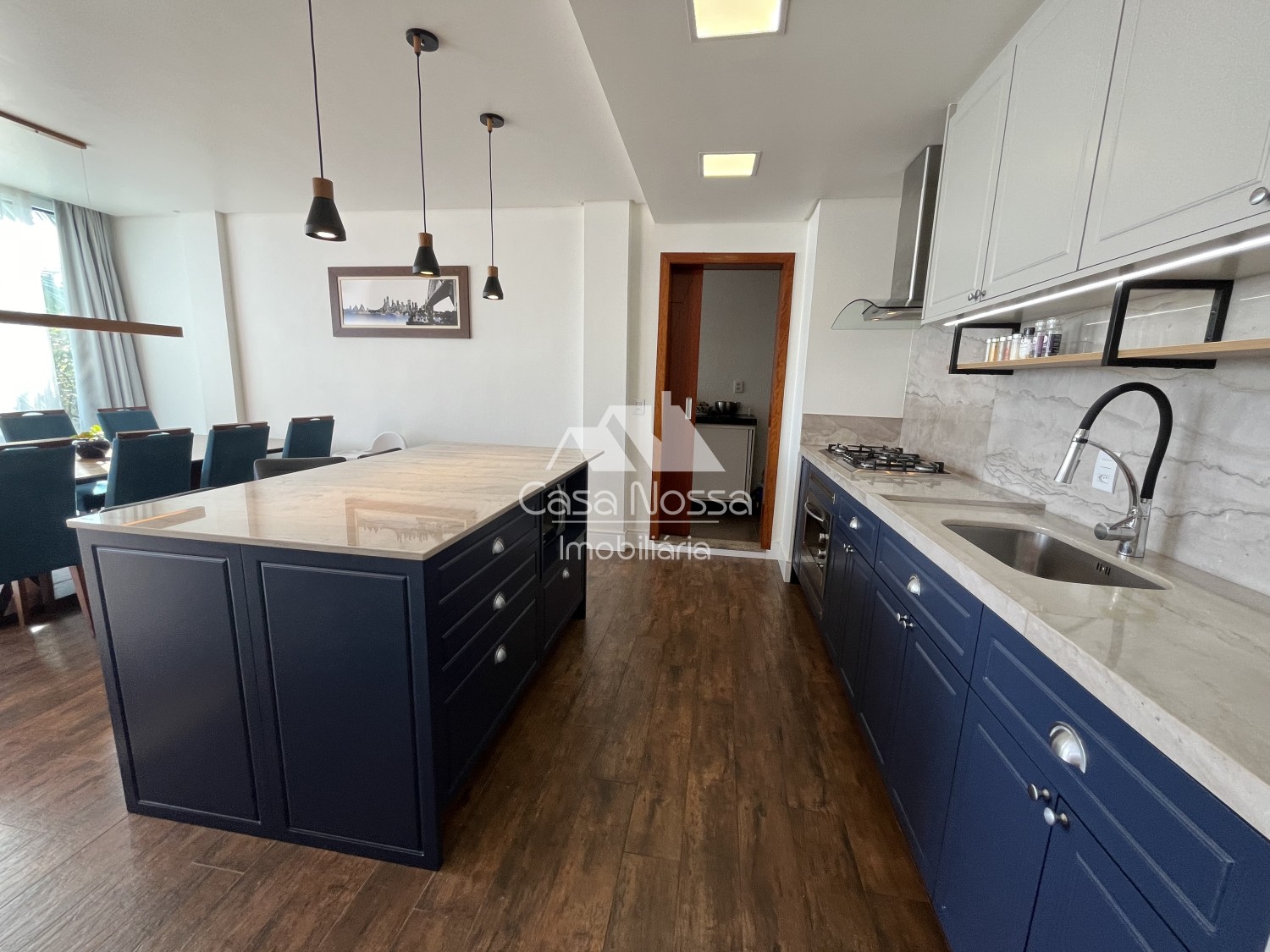 A cozinha é um ponto alto da casa, com uma bancada ampla e equipamentos modernos, que facilitam o preparo de deliciosas refeições. Possui lareira canadense e as janelas da área social são em PVC vidro com duplo. Além disso, tem uma mesa de jantar que acomoda toda a família, a área de serviço é funcional e prática, tornando as tarefas do dia a dia mais simples e organizadas.