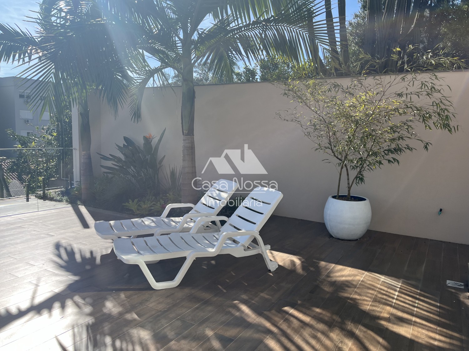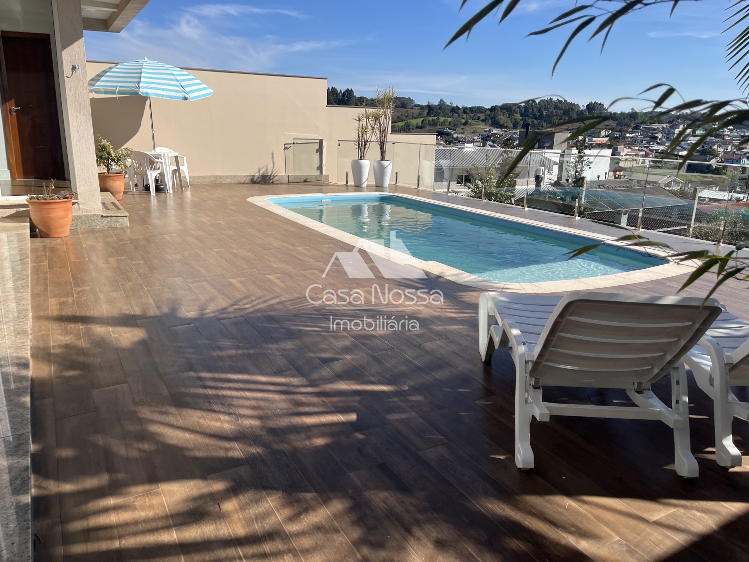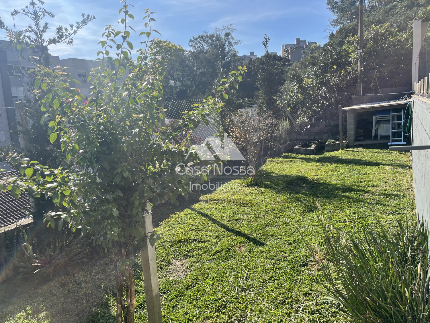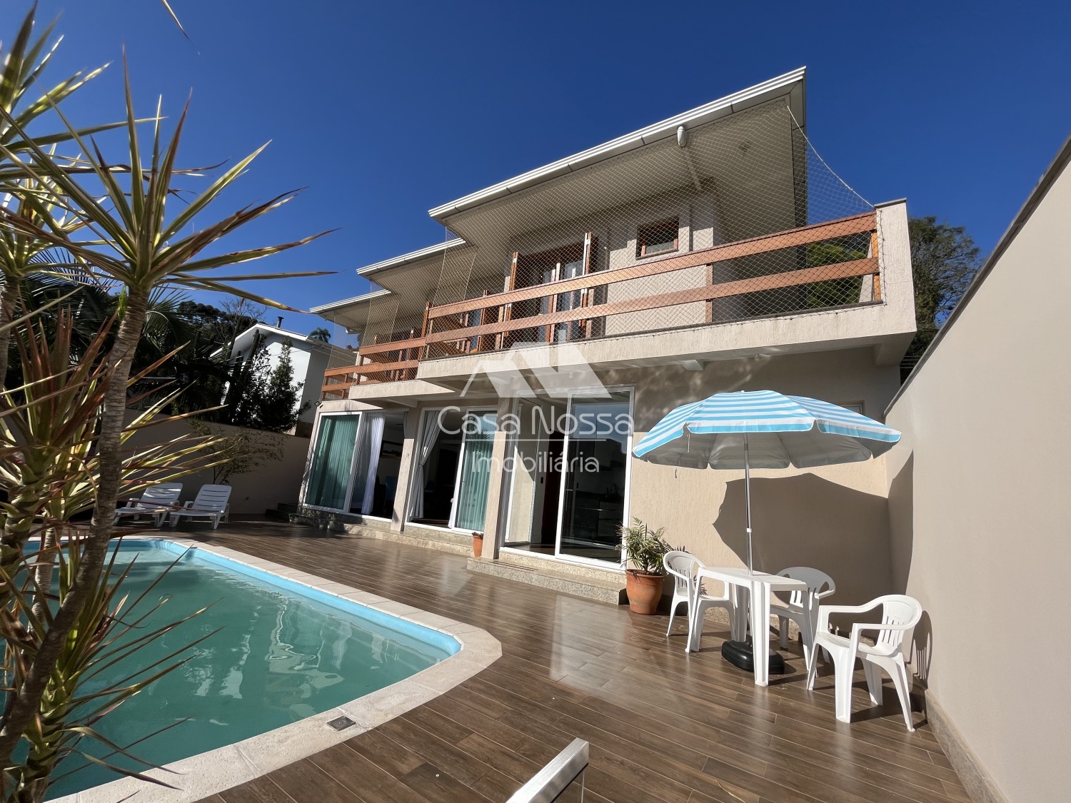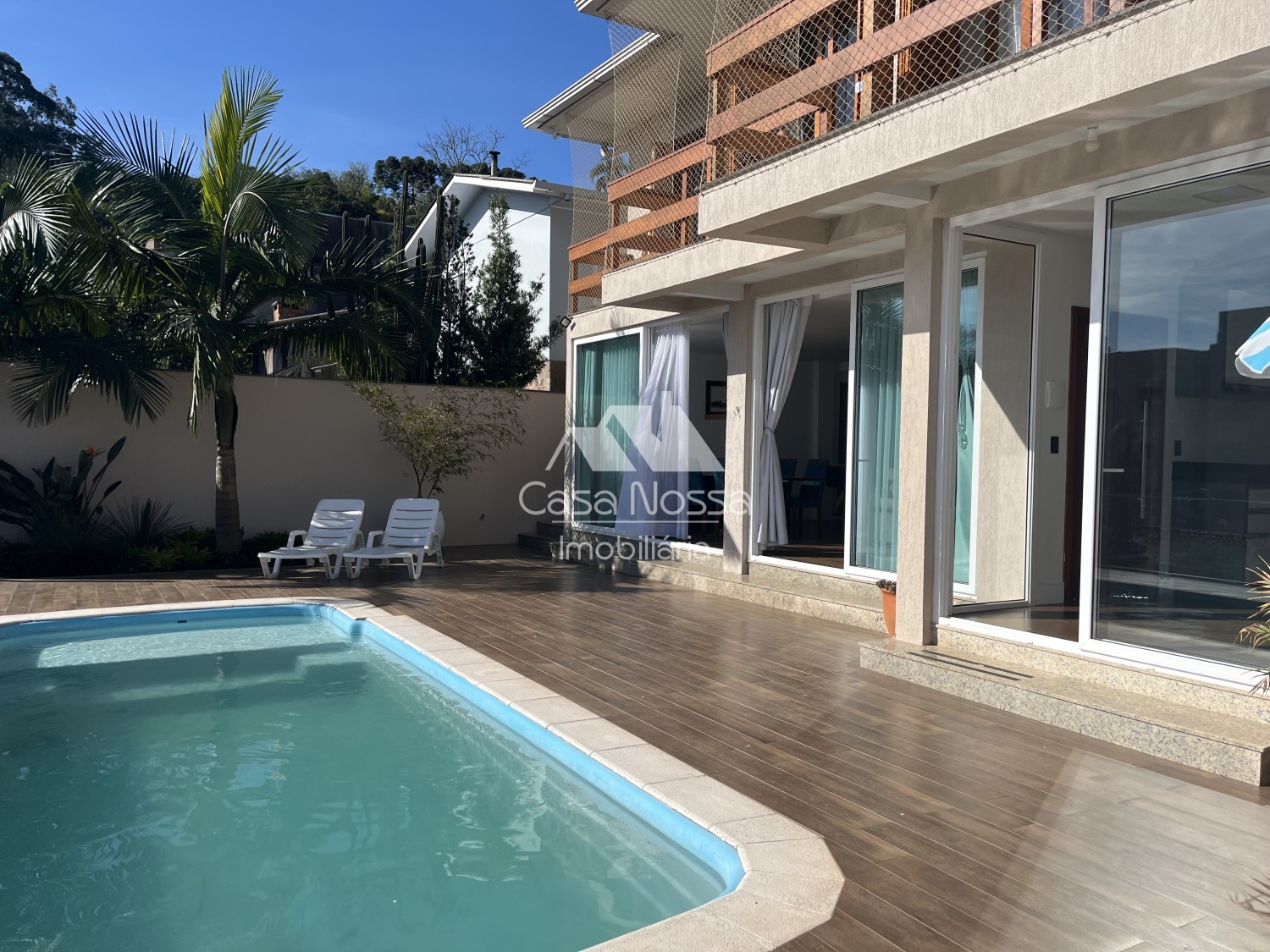 o Terreno foi muito bem aproveitado, além da piscina tem também um espaço de jardim na frente e nos fundos da residência.